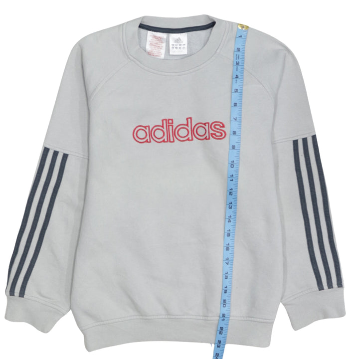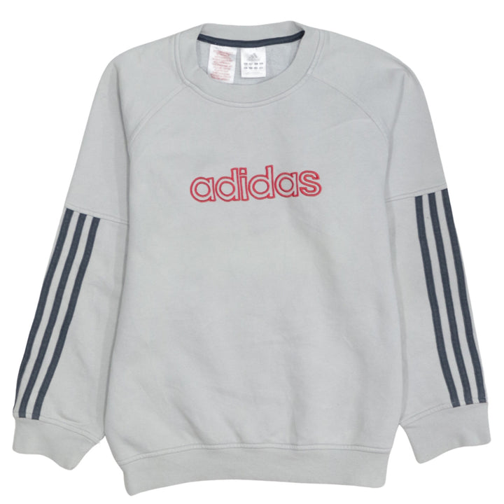 Adidas Light Grey Sweatshirt Women's Medium Embroidered Logo Three Stripe Sleeves Pullover Top