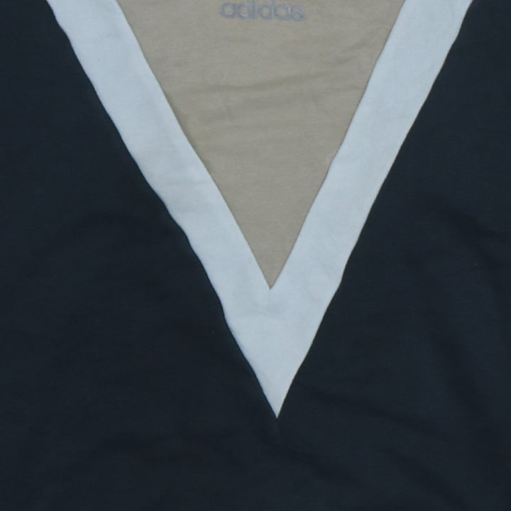 Adidas Navy Cream Sweatshirt Women's Small Embroidered Trefoil Logo V Panel Pullover Top