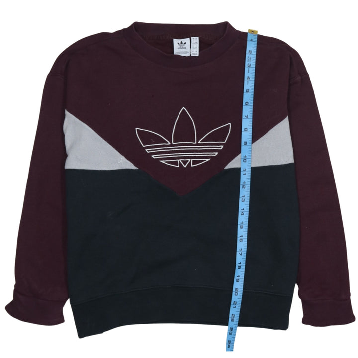 Adidas Burgundy Black Sweatshirt Women's XSmall Trefoil Logo Colour Block Crewneck Pullover Top
