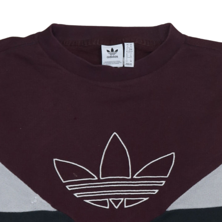 Adidas, Adidas sweatshirt, Adidas Trefoil, Adidas crewneck, Adidas pullover, women's Adidas jumper, women's Adidas sweatshirt, burgundy Adidas top, black Adidas sweatshirt, colour block sweatshirt, Trefoil logo jumper, casual pullover, fleece sweatshirt, long sleeve top, women's XSmall sweatshirt, XS Adidas, sporty jumper, athleisure top, crew neck fleece, ribbed cuffs, ribbed hem, comfy loungewear, classic Adidas style, Adidas Originals look, maroon sweatshirt, grey panel sweatshirt, cotton blend fleece, relaxed fit sweatshirt, oversized style jumper, everyday casual wear, gym cover up, training layer, Adidas logo front, graphic logo top, soft inner fleece, vintage Adidas, pre-owned Adidas, Adidas womenswear, Adidas casual jumper, Adidas colour block top, adidas maroon black, sports casual, Adidas long sleeve, winter layer, autumn layer, wardrobe staple, gift for Adidas fan