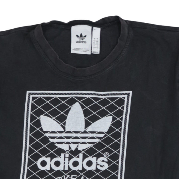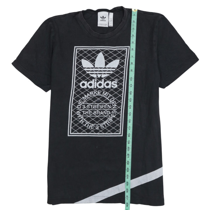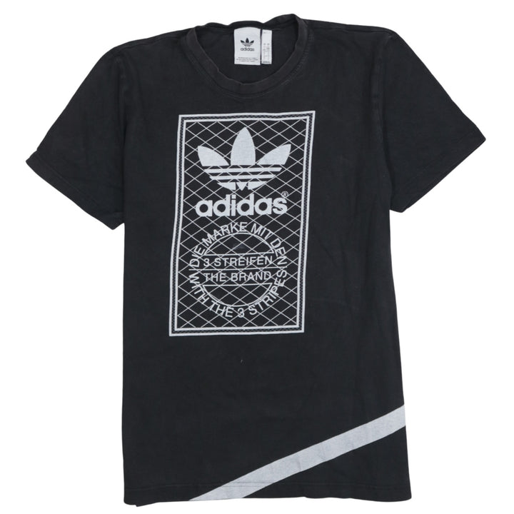 A classic Adidas graphic tee in black with a striking Trefoil front print and diagonal stripe detail.Easy to style with jeans, joggers or shorts, this soft cotton T-shirt is a reliable go-to for casual outfits.Relaxed fit and quality construction make it a comfortable staple you will reach for again and again.