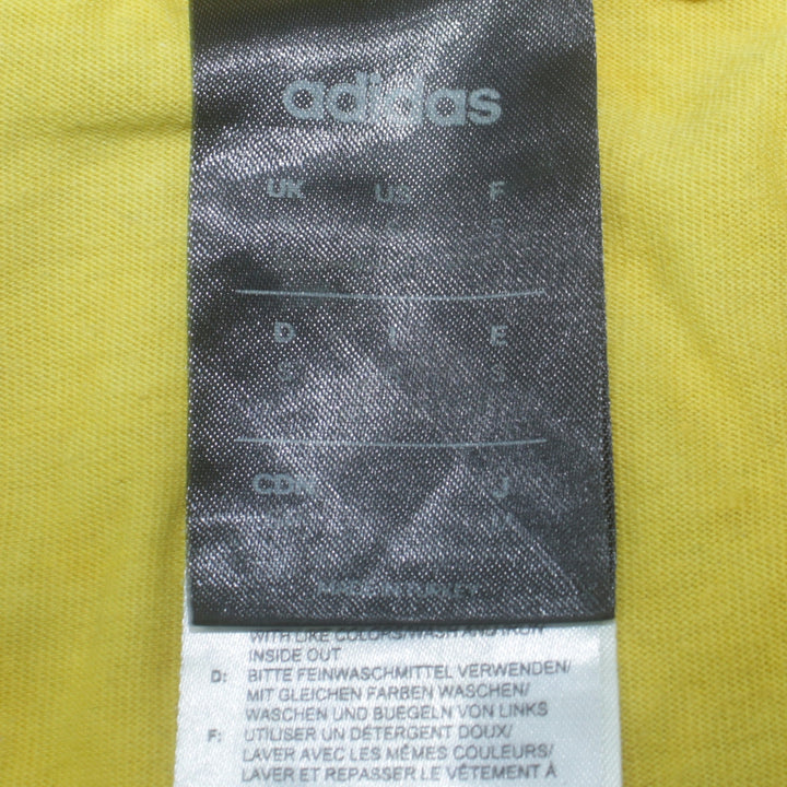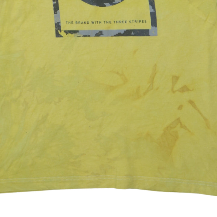 Adidas, Adidas t shirt, Adidas tee, Adidas top, yellow Adidas t shirt, yellow graphic t shirt, mens Adidas t shirt, mens yellow tee, mens small Adidas, Adidas 03 print, logo t shirt, printed logo tee, crew neck t shirt, short sleeve top, cotton t shirt, casual Adidas top, casual wear, sportswear top, everyday t shirt, relaxed fit tee, oversized style tee, chest 22 inches, length 29 inches, small size t shirt, graphic front print, tie dye effect, faded wash yellow, Adidas three stripes, Adidas casualwear, Adidas clothing, Adidas menswear, summer t shirt, layering tee, festival t shirt, skate style tee, logo graphic top, branded t shirt, second hand Adidas, pre-owned Adidas tee, used Adidas t shirt, Adidas crew neck, street casual top, sporty casual tee, soft cotton jersey, wardrobe staple, classic Adidas logo, Adidas short sleeve, Adidas casual outfit