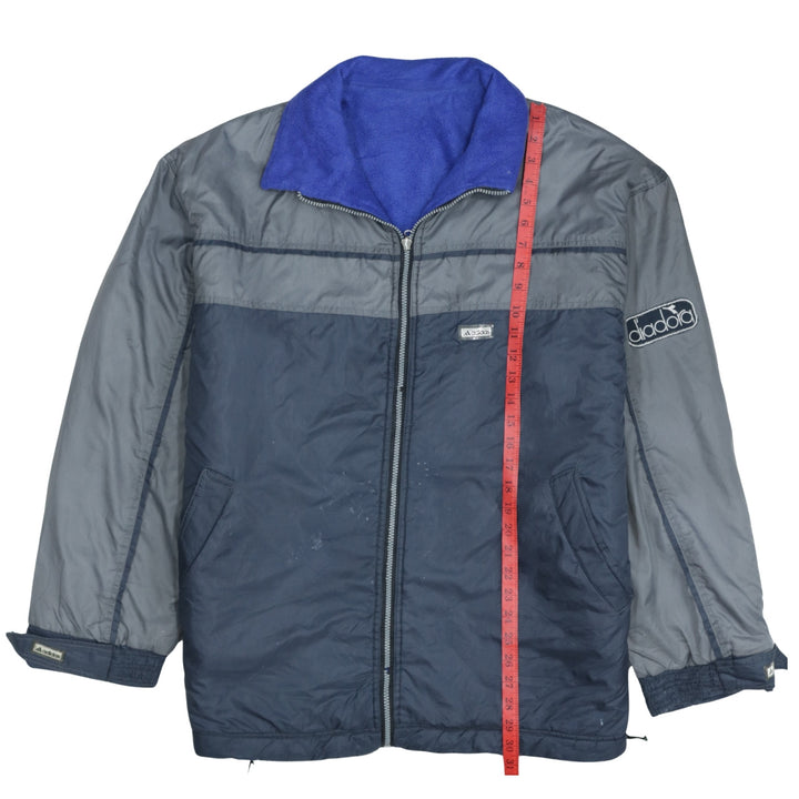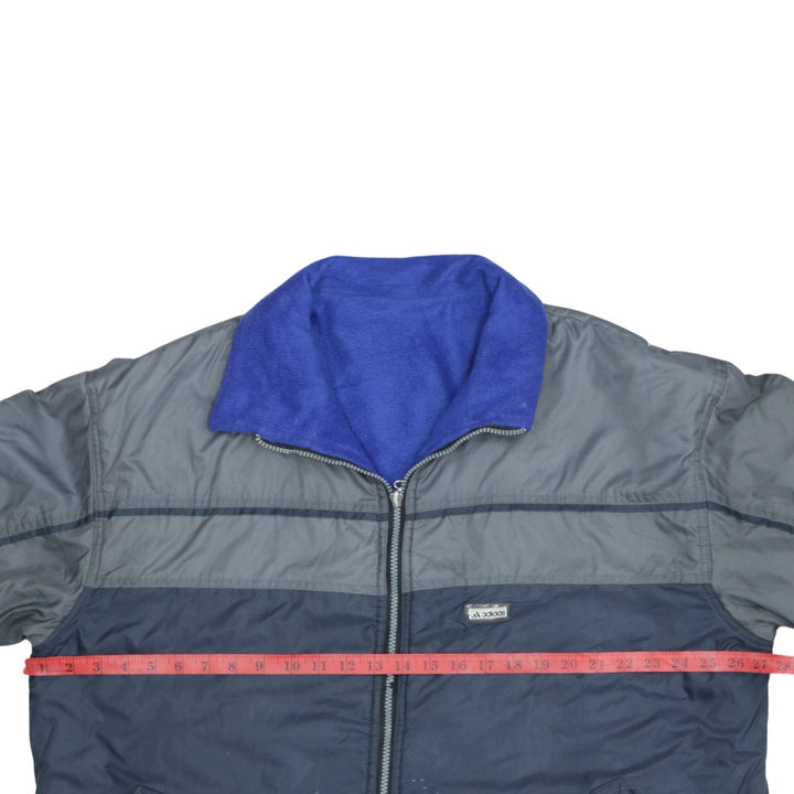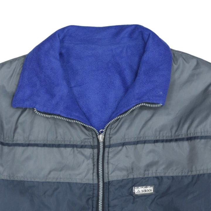 Adidas jacket, Adidas windbreaker, Adidas track jacket, Adidas outerwear, Adidas fleece lined jacket, Adidas navy jacket, Adidas grey jacket, navy grey windbreaker, men's Adidas jacket large, men's large Adidas coat, full zip Adidas jacket, fleece lined windbreaker, two tone Adidas coat, casual sports jacket, everyday outerwear, lightweight jacket, polyester jacket, wool blend lining, long sleeve jacket, zip front coat, logo jacket, branded jacket, men's sportswear, men's athleisure jacket, relaxed fit jacket, oversized fit jacket, classic Adidas style, Adidas logo badge, adjustable cuffs jacket, Velcro cuff jacket, elastic hem jacket, practical pockets jacket, autumn jacket, winter layering jacket, street casual jacket, training jacket, jogger outfit top, layering piece, cold weather coat, vintage Adidas jacket, navy blue coat, grey sleeve jacket, colour block jacket, classic sports coat, second hand Adidas, sustainable fashion, pre-owned Adidas coat, men's casual coat, wardrobe staple jacket, everyday casual wear