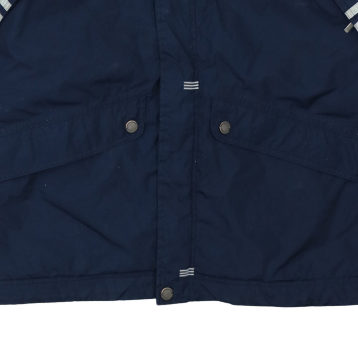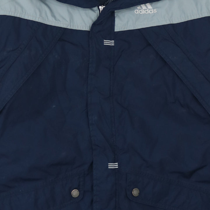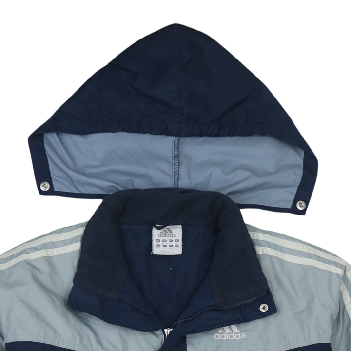 Adidas Navy Blue Windbreaker Jacket Women's Large Detachable Hood Three Stripe Logo Outerwear