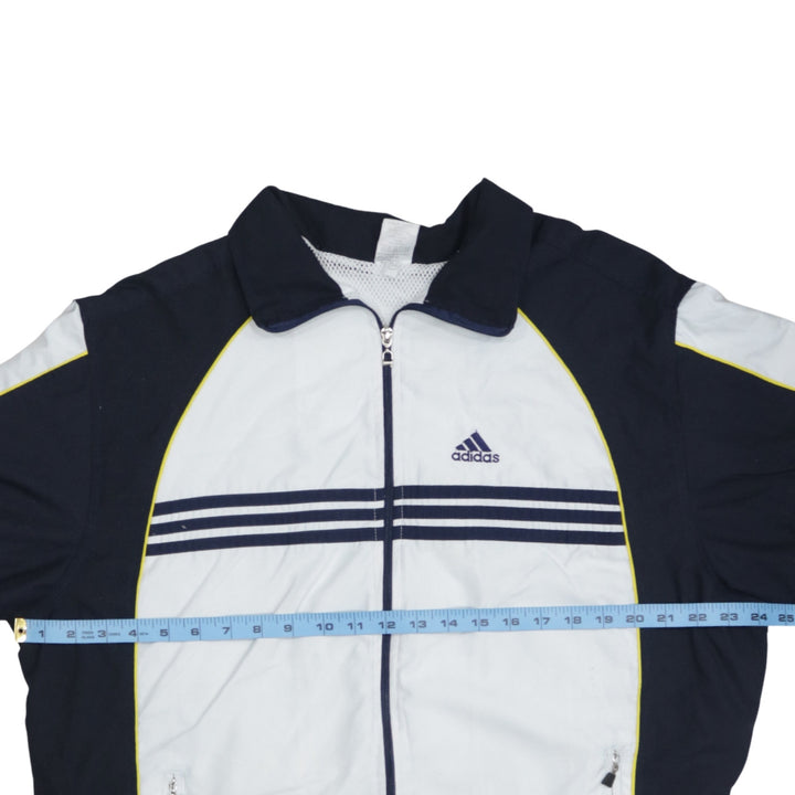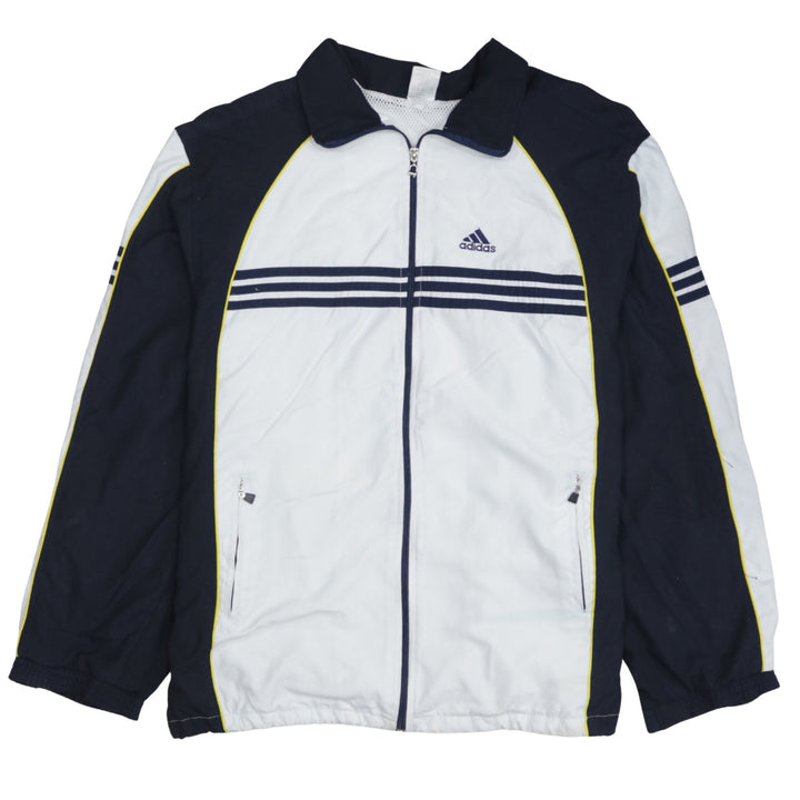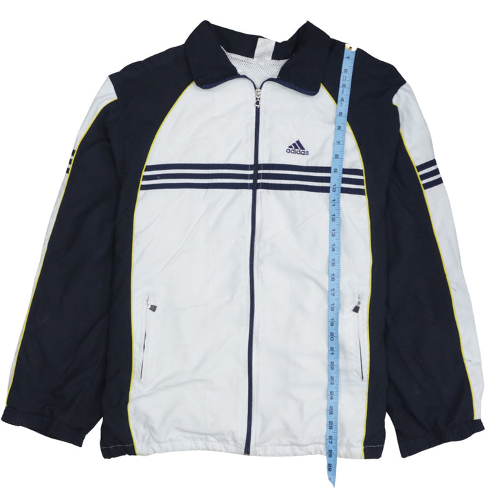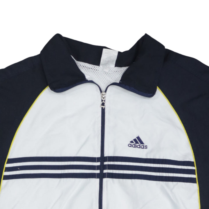 Adidas, Adidas jacket, Adidas windbreaker, Adidas track jacket, white Adidas jacket, navy Adidas jacket, men’s Adidas jacket, men’s Large Adidas, Large windbreaker, Large track top, embroidered Adidas logo, three stripe jacket, full zip Adidas, mesh lining jacket, sports jacket, training jacket, casual jacket, lightweight jacket, polyester jacket, men’s outerwear, men’s sportswear, white navy windbreaker, elasticated cuffs, zip pockets jacket, athleisure jacket, classic Adidas style, Adidas athletics, Adidas three stripes, Adidas top, shell jacket, track top, breathable jacket, everyday jacket, casual sports jacket, zip front jacket, stand collar jacket, long sleeve jacket, Adidas original style, men’s activewear, gym jacket, running jacket, football training jacket, vintage Adidas, 90s Adidas style, colourblock jacket, navy stripe jacket, white sports coat, men’s casual outerwear