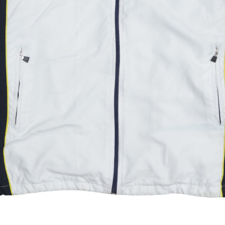 Adidas White Navy Windbreaker Jacket Men's Large Embroidered Logo Three Stripe Zip Pockets Track Top