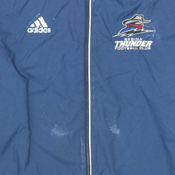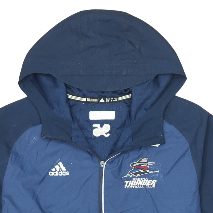 Adidas Navy Blue Hooded Jacket Men's XLarge Zip Thunder Football Club Printed Logo Windbreaker