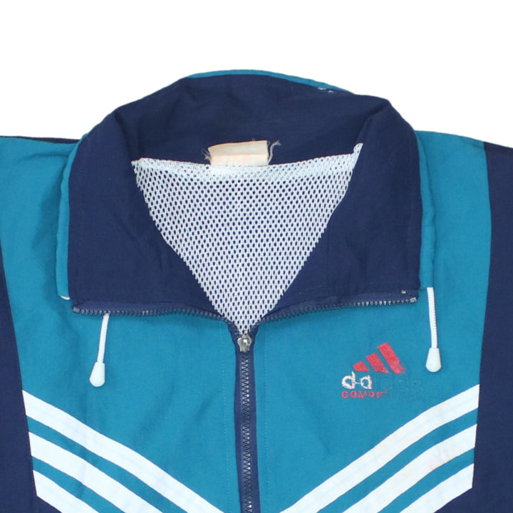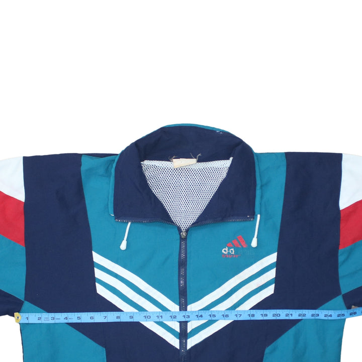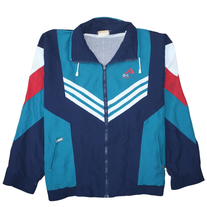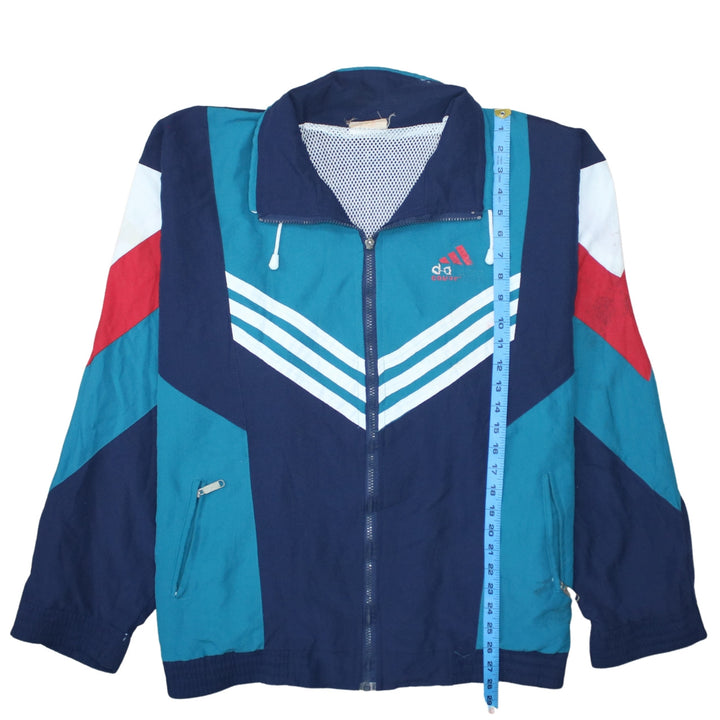 Adidas, Adidas jacket, Adidas windbreaker, Adidas track jacket, Adidas outerwear, Adidas colour block, Adidas chevron, Adidas three stripes, Adidas embroidered logo, navy Adidas jacket, teal Adidas jacket, blue Adidas windbreaker, men’s Adidas jacket, men’s XLarge jacket, XL jacket, full zip jacket, mesh lining jacket, polyester jacket, lightweight jacket, casual jacket, sports jacket, track top, training jacket, festival jacket, vintage Adidas, classic Adidas, navy teal red jacket, colour block shell, elasticated cuffs, elastic hem, zip pockets, stand collar jacket, men’s outerwear, relaxed fit jacket, oversized fit jacket, athleisure jacket, everyday jacket, Adidas Europe logo, 90s style Adidas, collectible Adidas, street style jacket, layering piece, second hand Adidas, pre-owned Adidas, A grade condition, wardrobe staple, breathable jacket, shell jacket