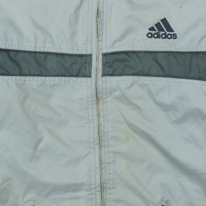 Adidas jacket, Adidas windbreaker, Adidas track jacket, Adidas fleece lined jacket, Adidas grey jacket, light grey Adidas, men's Adidas jacket, mens XLarge Adidas, XL Adidas coat, Adidas outerwear, Adidas full zip, Adidas embroidered logo, Adidas logo jacket, fleece lined windbreaker, polyester jacket, casual jacket, training jacket, sportswear jacket, athletic jacket, light grey windbreaker, grey track top, men's grey coat, men's outerwear, casual outerwear, everyday jacket, zip pockets jacket, elasticated cuffs jacket, stand collar jacket, two tone grey jacket, Adidas sports coat, Adidas activewear, relaxed fit jacket, oversized fit jacket, street style jacket, classic Adidas logo, pre-owned Adidas, second hand Adidas jacket, men's casual coat, fleece inner jacket, lightweight shell jacket, shell jacket, Adidas spring jacket, Adidas autumn jacket, vintage Adidas jacket, branded sports jacket, zip fastening jacket, grey fleece jacket, Adidas top layer, layering piece