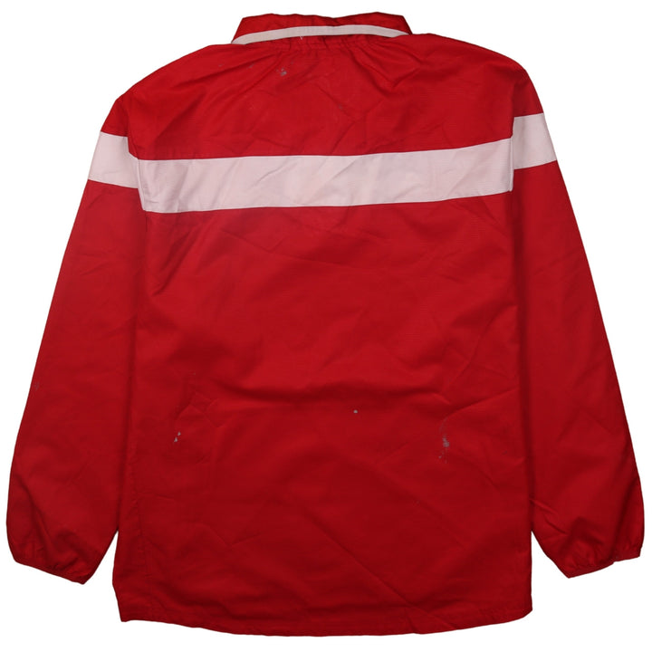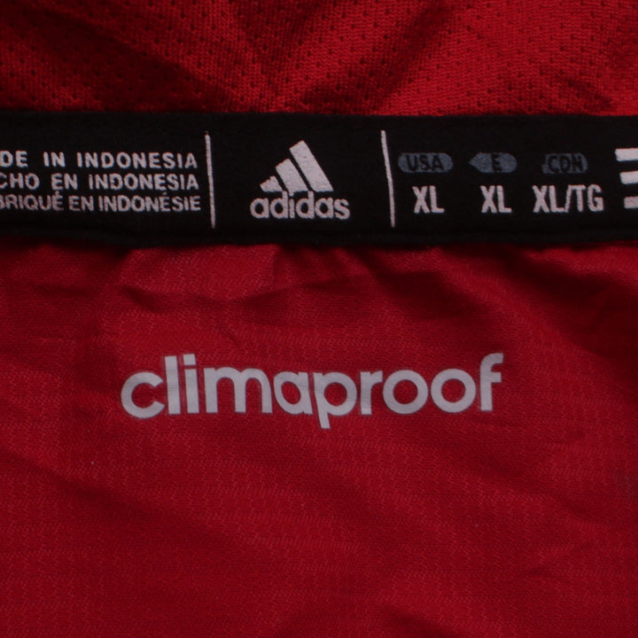 This Adidas ClimaProof pullover windbreaker is a great grab for training, touchline duty or everyday casual wear. The lightweight shell and mesh lining keep it breathable while helping to block wind, and the relaxed XL fit makes it easy to layer over tees, shirts or hoodies. Classic red with white detailing and bold chest embroidery gives it that authentic sports look that works season after season.