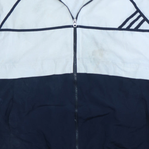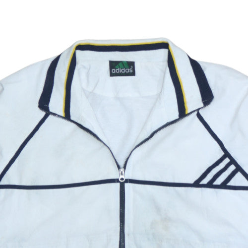 Adidas White Navy Windbreaker Jacket Men's XLarge Embroidered Logo Full Zip Track Top Outerwear