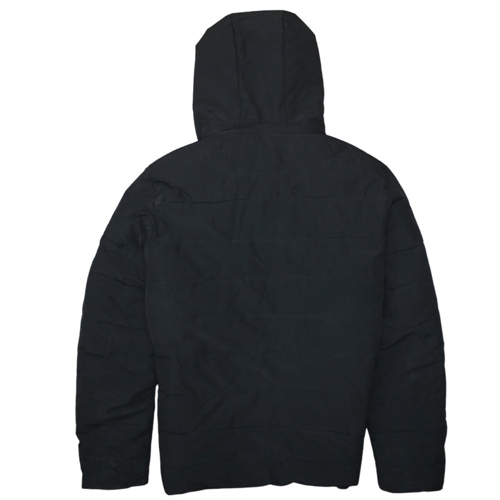 Key Features: Padded hood, three-stripe sleeve detail, zip pockets, chest logo, warm quilted design
