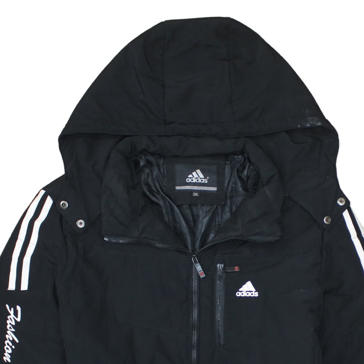 Adidas Black Hooded Jacket Women’s XXLarge Three Stripe Sleeves Zip Pockets Puffer Coat