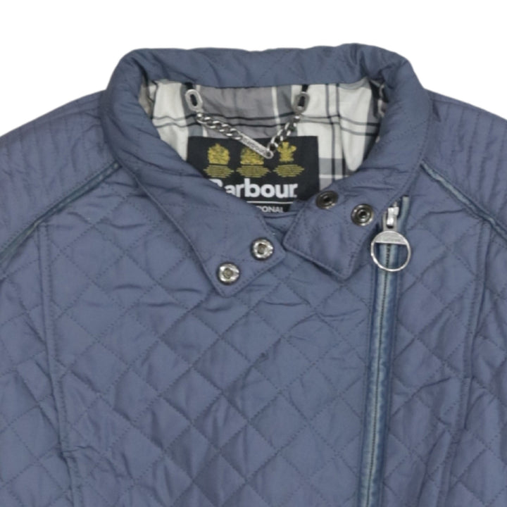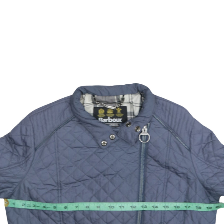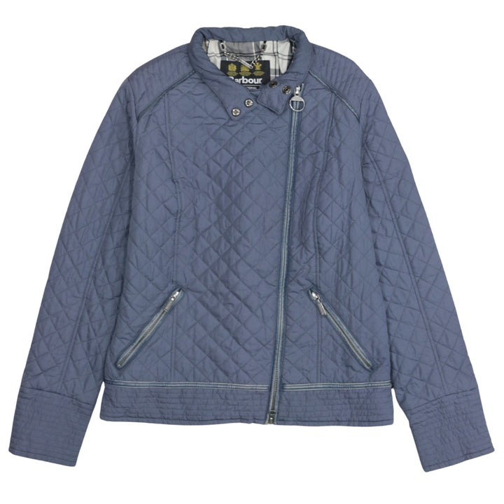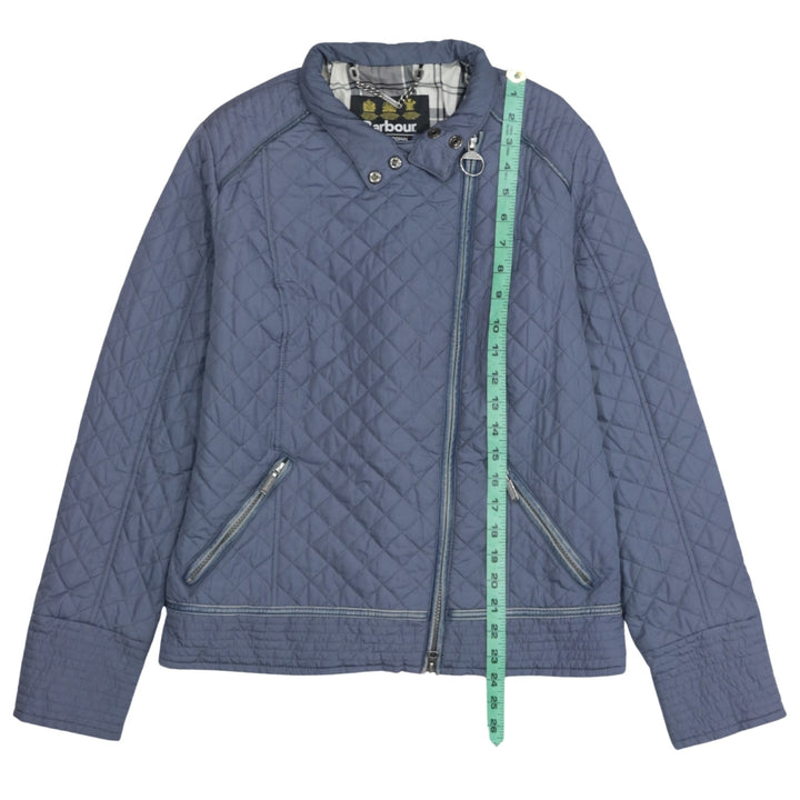Barbour Blue Quilted Jacket Women's Medium Asymmetric Zip Zip Pockets Biker Outerwear