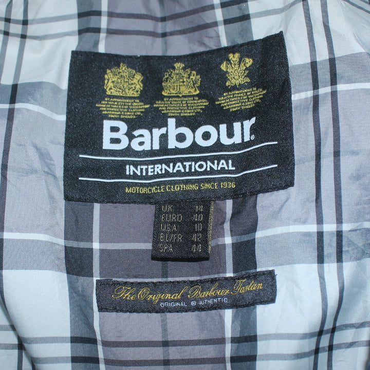 Key Features: Diamond quilted design, asymmetric front zip, zip pockets, adjustable cuffs, Barbour Black Streak lining