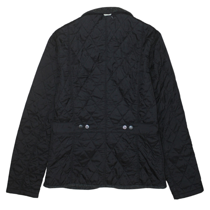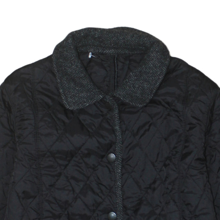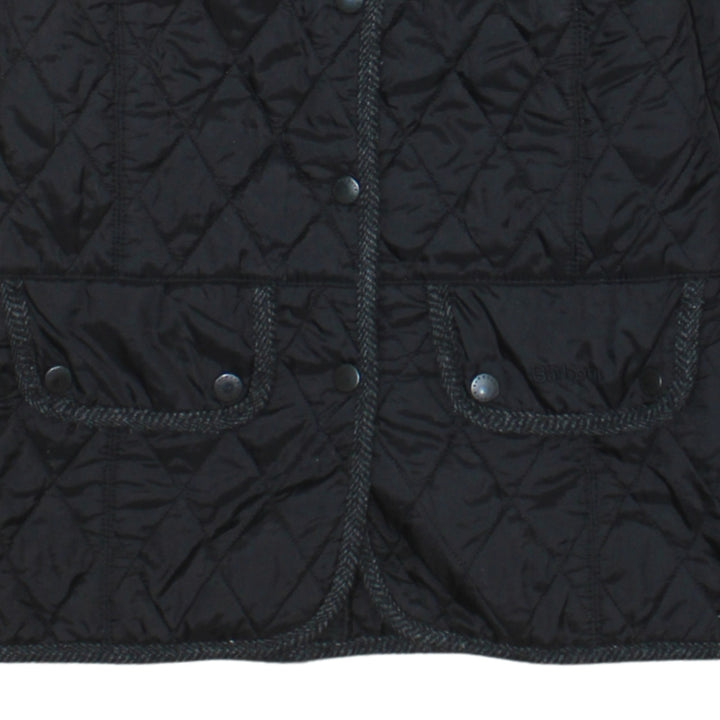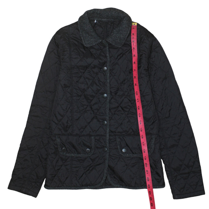 Barbour, Barbour jacket, Barbour quilted jacket, black Barbour, black quilted jacket, women’s Barbour, womens Barbour jacket, womens black jacket, quilted coat, lightweight quilted jacket, diamond quilted, snap button jacket, wool collar jacket, wool trim jacket, casual outerwear, country style jacket, riding jacket, equestrian jacket, small size jacket, women’s small jacket, relaxed fit jacket, layering piece, Barbour outerwear, classic Barbour style, timeless jacket, UK fashion, spring jacket, autumn jacket, casual coat, everyday jacket, polyester jacket, wool blend collar, Barbour windbreaker, country wear, heritage style, black coat, smart casual jacket, vintage Barbour, pre-owned Barbour, A grade condition, wardrobe staple, outdoor jacket, walking jacket, commuting jacket, black womens coat, quilted outerwear, button front jacket, Barbour quilt, insulated jacket