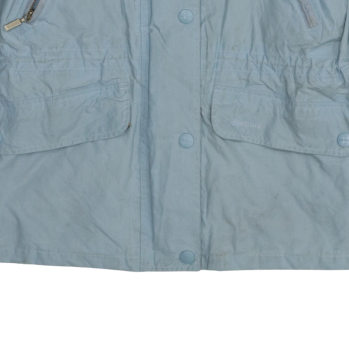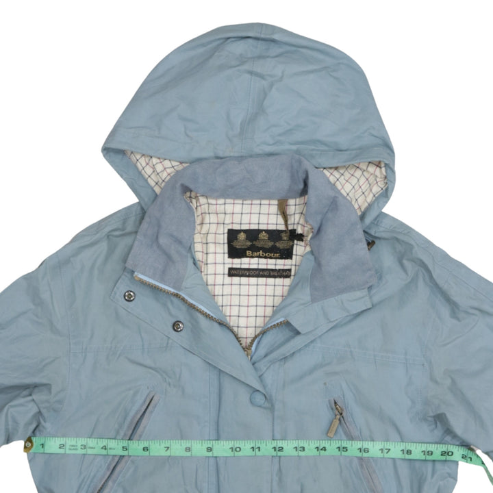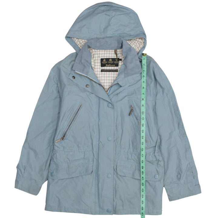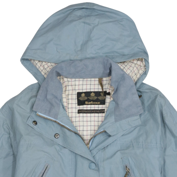 Barbour Light Blue Hooded Jacket Men’s Small Zip Pockets Checked Lining Windbreaker Coat