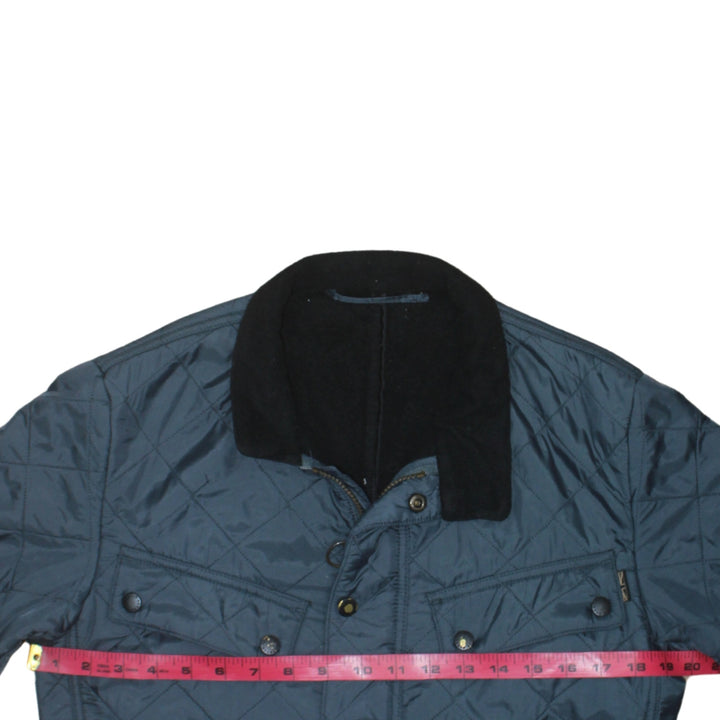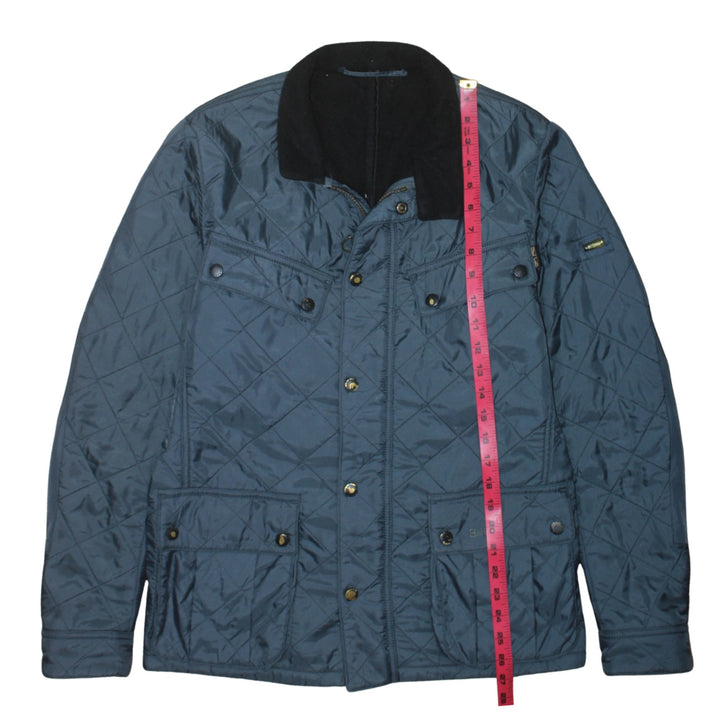 Barbour Blue Quilted Jacket Men's Small Cord Collar Snap Pockets Embroidered Logo Outerwear