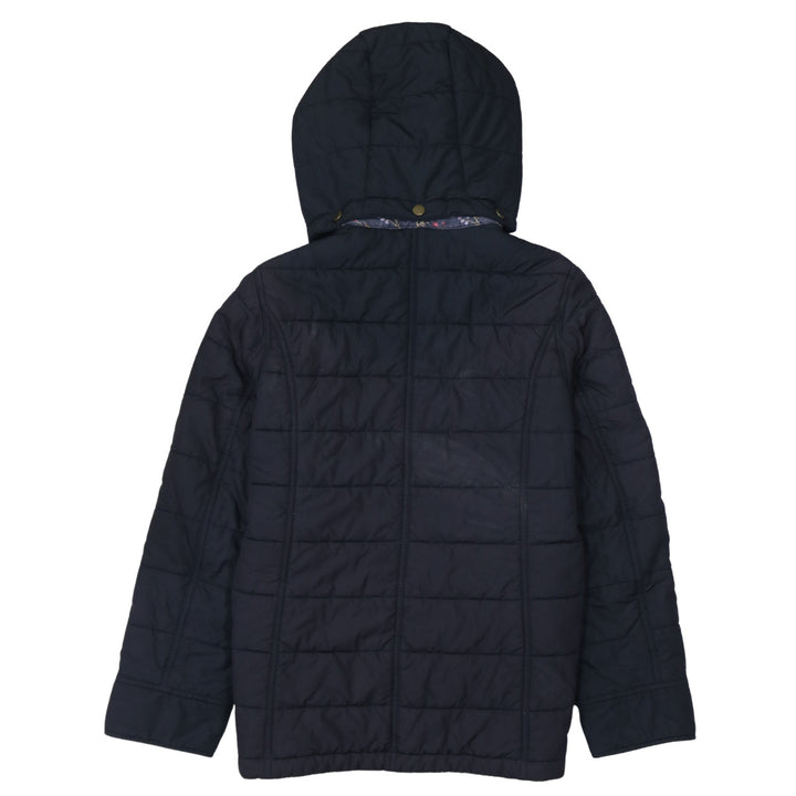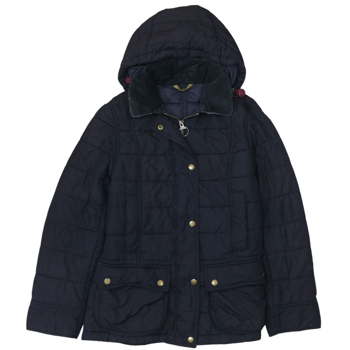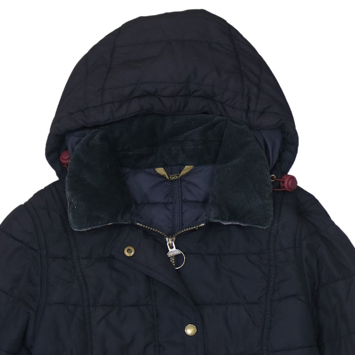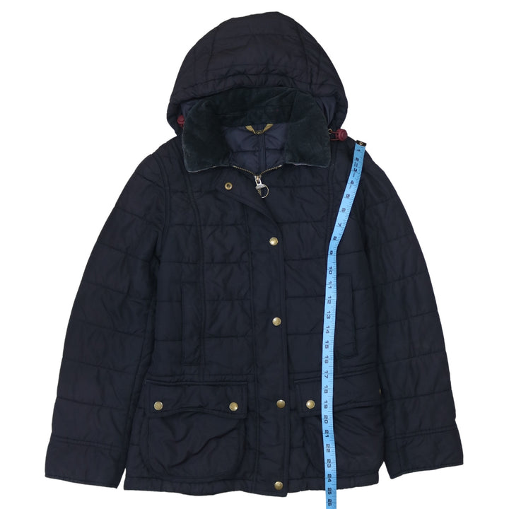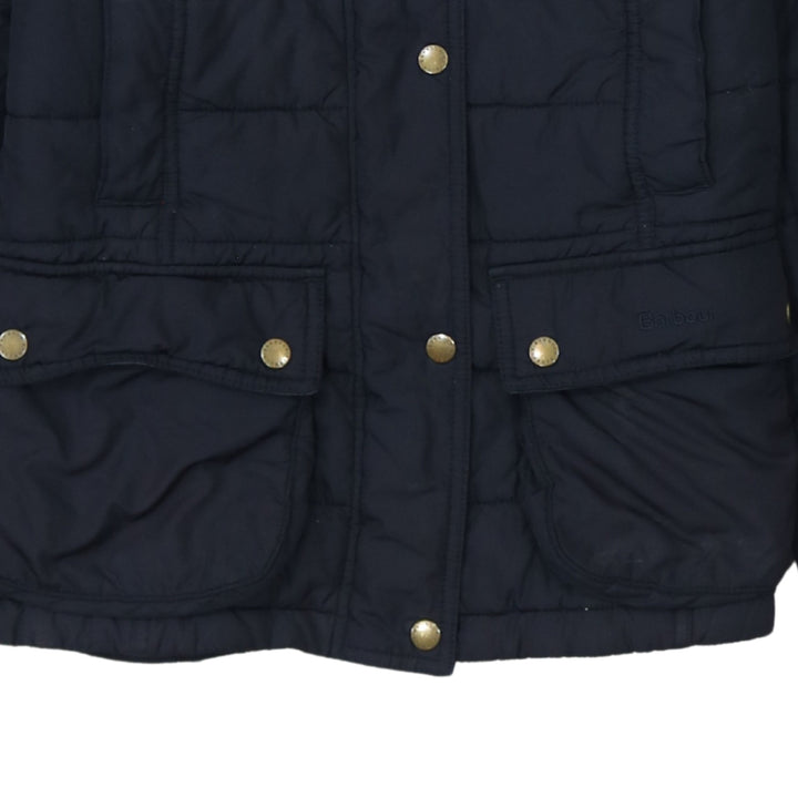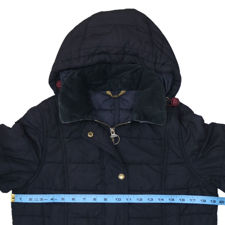 Barbour Navy Blue Hooded Jacket Women’s Small Quilted Padded Popper Pockets Outerwear