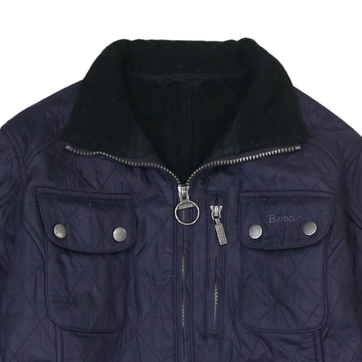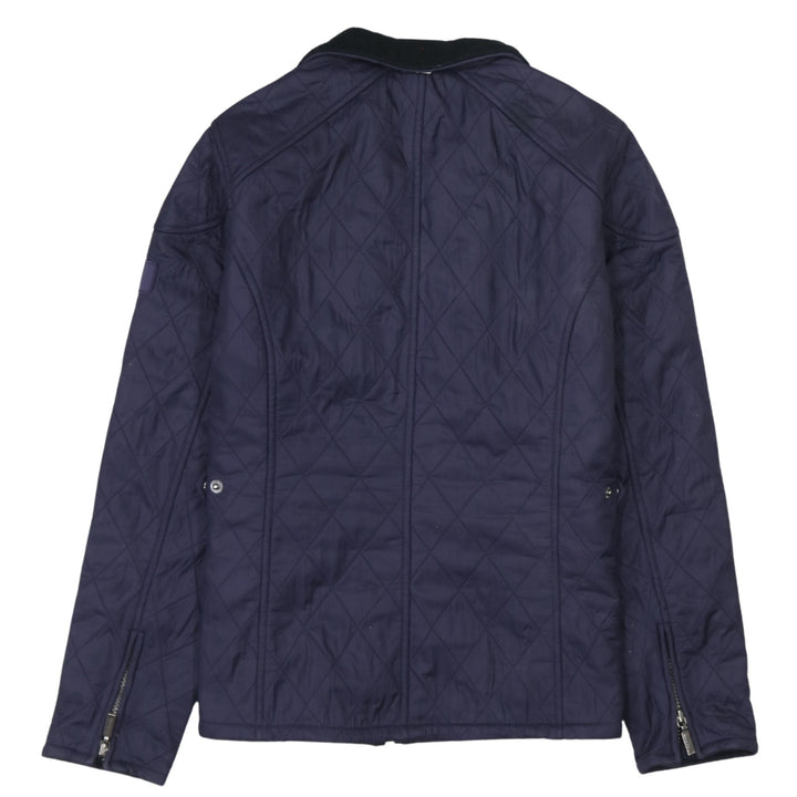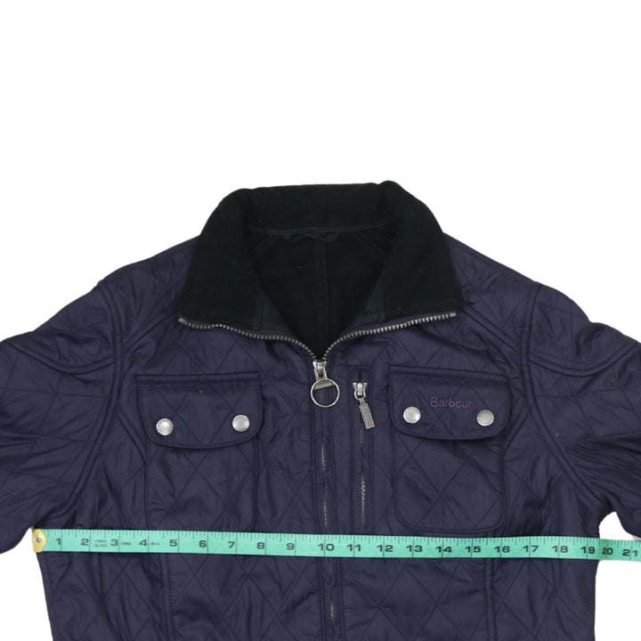 Barbour Navy Blue Quilted Jacket Women's Small Zip Pockets Cord Collar Embroidered Logo Outerwear