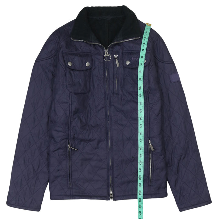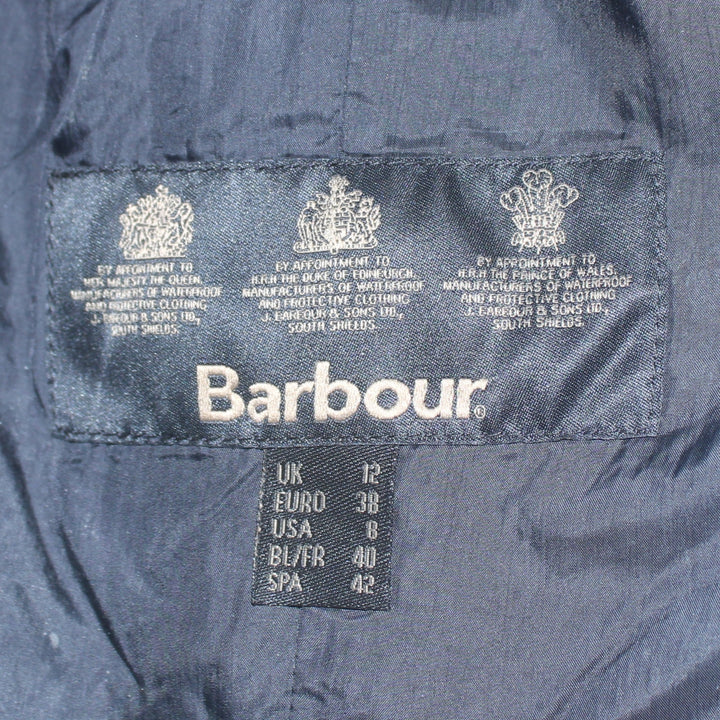 Barbour, Barbour jacket, Barbour quilted jacket, Barbour navy jacket, navy blue jacket, women's Barbour, women's quilted jacket, women's navy coat, small size jacket, S size jacket, Barbour outerwear, country jacket, heritage jacket, quilted coat, diamond quilt jacket, full zip jacket, cord collar jacket, zip pockets jacket, lightweight coat, casual jacket, smart casual outerwear, classic Barbour style, polyester jacket, wool blend lining, A grade condition, pre owned Barbour, second hand Barbour, women's outerwear, navy quilted coat, everyday jacket, walking jacket, country wear, British style jacket, insulated jacket, lined jacket, casual coat, layering piece, timeless jacket, Barbour embroidered logo, funnel neck jacket, zip cuff sleeves, adjustable sides, transitional jacket, autumn jacket, spring jacket, Barbour small women's, navy blue Barbour quilted, stylish warm jacket