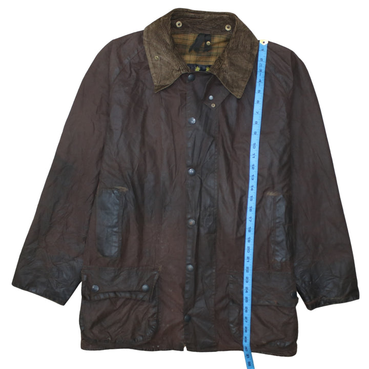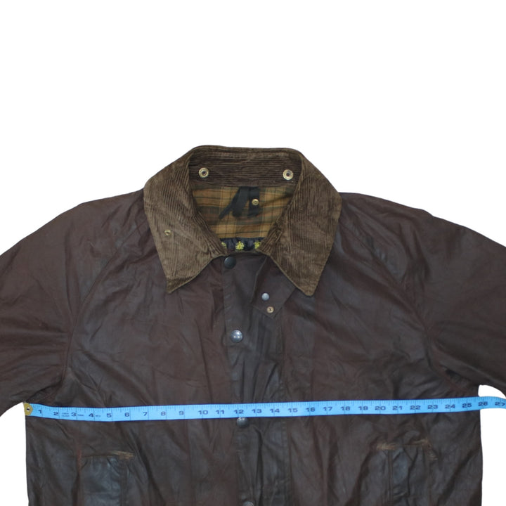 Barbour, Barbour jacket, Barbour wax jacket, brown Barbour, brown wax jacket, men's Barbour, men's wax jacket, men's brown jacket, XLarge jacket, XL jacket, field coat, country jacket, outdoor jacket, waxed coat, tartan lining, cord collar, corduroy collar, snap pockets, hunting jacket, shooting jacket, barn coat, utility jacket, casual jacket, everyday jacket, workwear jacket, heritage jacket, relaxed fit jacket, oversized fit jacket, wax outerwear, autumn jacket, winter jacket, layering piece, classic Barbour style, Barbour outerwear, brown country coat, longline jacket, button front jacket, zip front jacket, Barbour menswear, pre-owned Barbour, used Barbour jacket, second hand Barbour, Barbour XLarge, earthy tones jacket, wax cotton look jacket