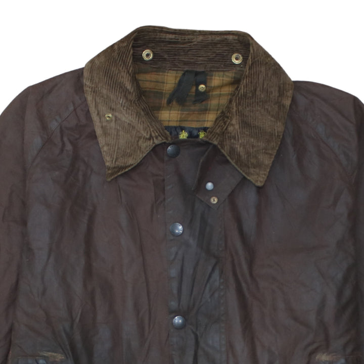 Barbour Brown Wax Jacket Men's XLarge Cord Collar Tartan Lined Snap Pockets Outerwear