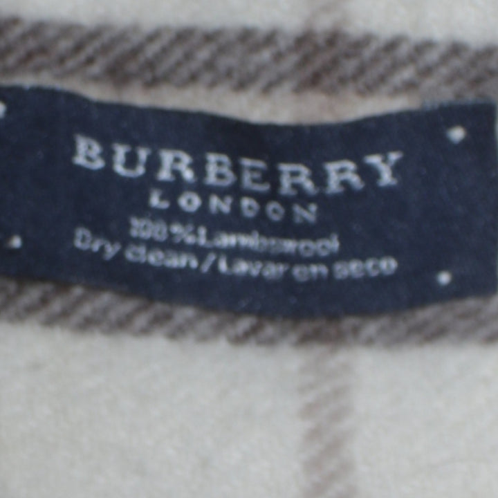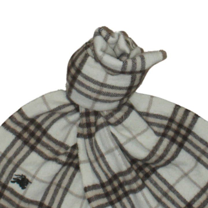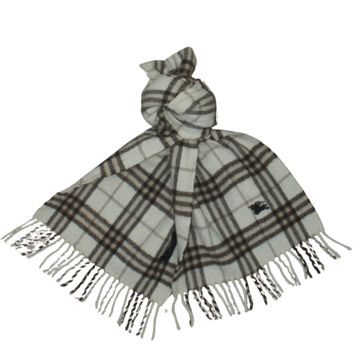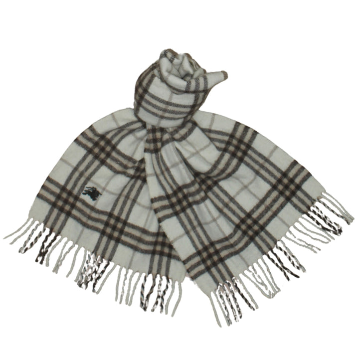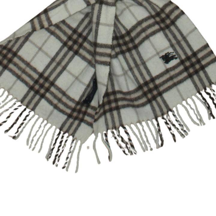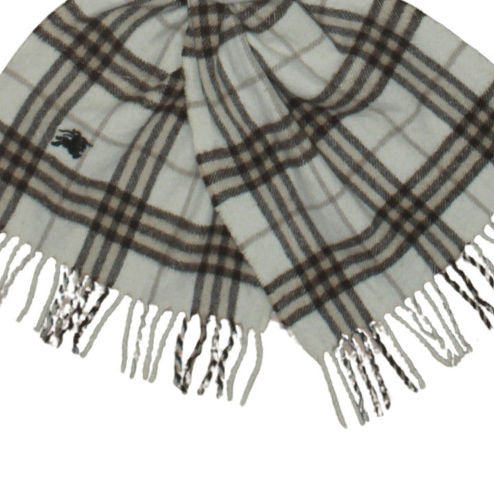 Burberry Beige Cream Check Scarf Men's One Size Embroidered Equestrian Logo Tassel Fringe
