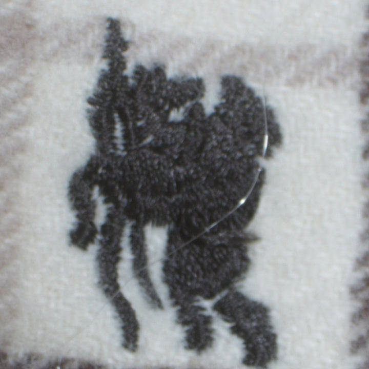 Key Features: Classic check pattern, soft handle, embroidered equestrian logo, tassel fringe ends