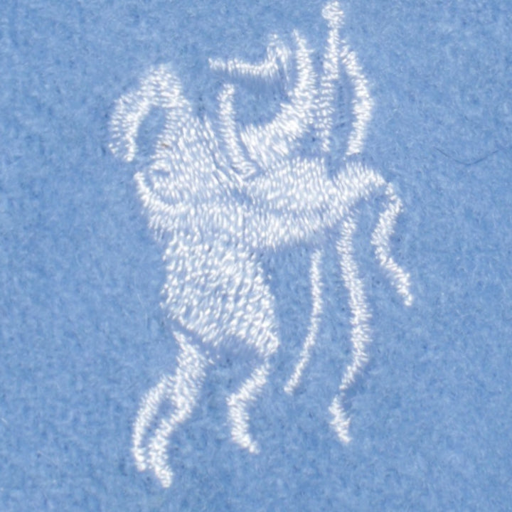 Key Features: Soft light blue fabric, embroidered equestrian logo, classic tassel fringe ends