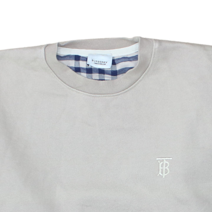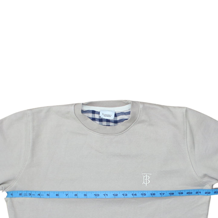 Burberry Beige Cream Sweatshirt Women's Large Embroidered TB Logo Crewneck Pullover Jumper