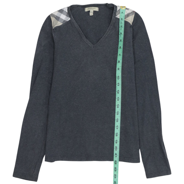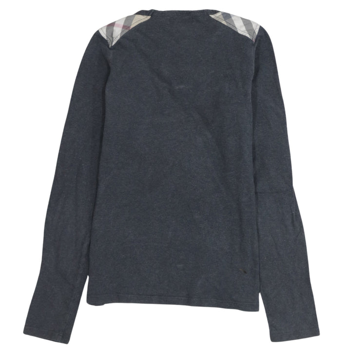 Burberry Dark Grey Long Sleeve Top Women’s Small Nova Check Shoulder Detail Pullover Tee