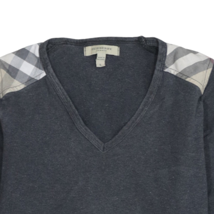 Burberry long sleeve top, Burberry womens top, Burberry dark grey top, Burberry V neck, Burberry Nova check shoulders, Burberry check detail, designer long sleeve tee, womens Burberry small, Burberry S top, Burberry jersey top, Burberry casual top, Burberry layering piece, Burberry core basics, Burberry everyday wear, Burberry classic check, grey Burberry shirt, grey Burberry long sleeve, womens designer clothing, womens designer top, luxury long sleeve tee, Burberry pullover, Burberry knit feel top, Burberry wardrobe staple, Burberry smart casual, Burberry office wear, Burberry loungewear style, Burberry high end fashion, Burberry signature check, Nova check accents, dark grey womens top, slim fit long sleeve, relaxed fit long sleeve, soft jersey long sleeve, Burberry fashion piece, Burberry online sale, Burberry clothing UK, S size womens top, designer minimalist top, capsule wardrobe top, neutral colour top, chic long sleeve tee, Burberry basic long sleeve, Burberry logo style, Burberry outfit idea, timeless Burberry piece, premium womenswear, second hand Burberry, Burberry pre-owned, sustainable fashion Burberry