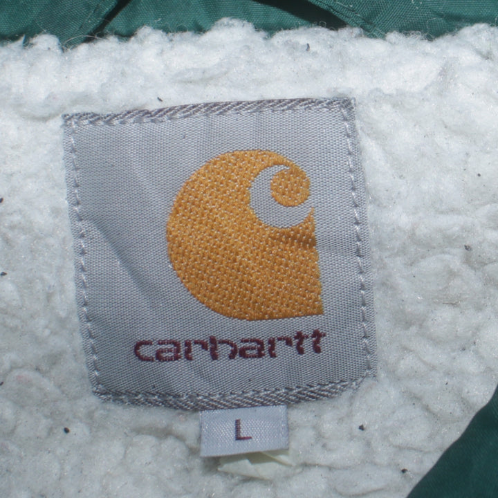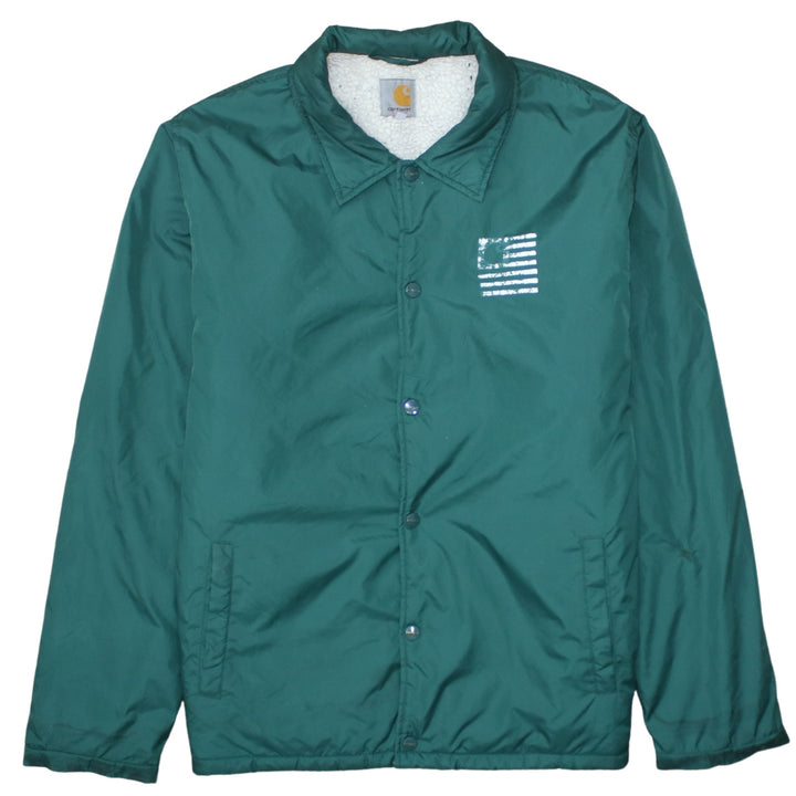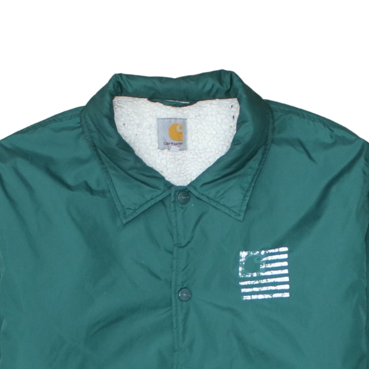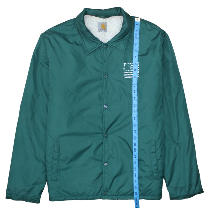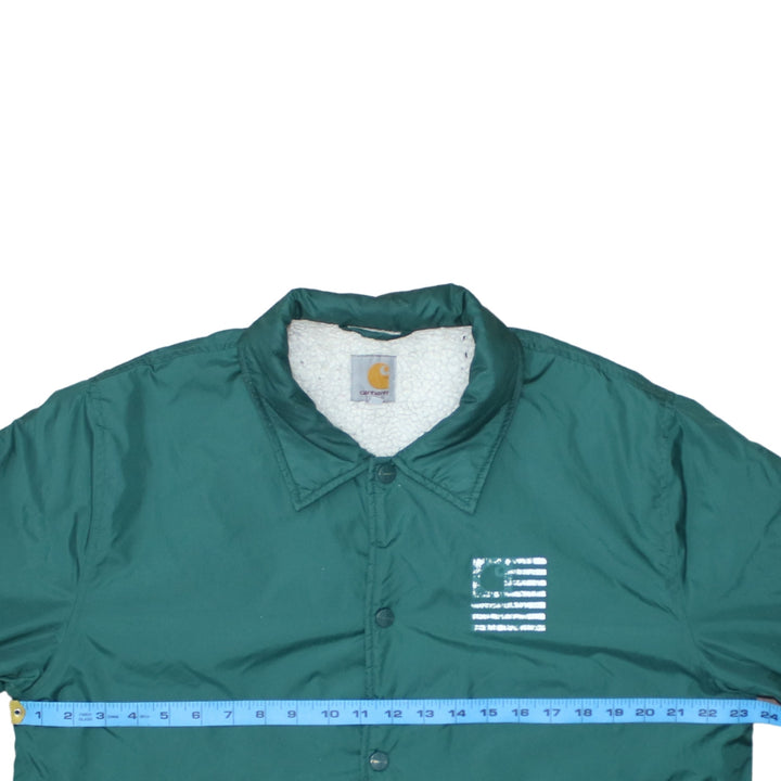Carhartt Green Coach Jacket Men's Large Printed Chest Logo Fleece Lined Windbreaker Outerwear