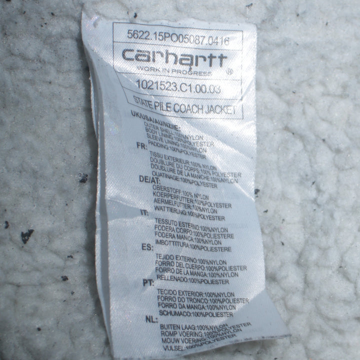 Carhartt, Carhartt WIP, green coach jacket, green Carhartt jacket, men's Carhartt jacket, men's green jacket, men's windbreaker, nylon coach jacket, fleece lined coach jacket, pile lined jacket, snap button jacket, men's large jacket, L size jacket, casual outerwear, lightweight jacket, lined windbreaker, Carhartt flag logo, printed logo jacket, long sleeve jacket, collared jacket, men's outerwear, everyday jacket, casual jacket, workwear style jacket, green nylon coat, fleece body lining, nylon shell jacket, Carhartt State Pile, Carhartt snap jacket, green nylon windbreaker, men's casual coat, relaxed fit jacket, autumn jacket, winter layering jacket, street casual jacket, outdoor jacket, shell jacket, polyester fleece lining, side pocket jacket, classic coach jacket, minimal logo jacket, Carhartt large green, pile lined coach, button front coat, work jacket, skate style jacket, men's fashion jacket
