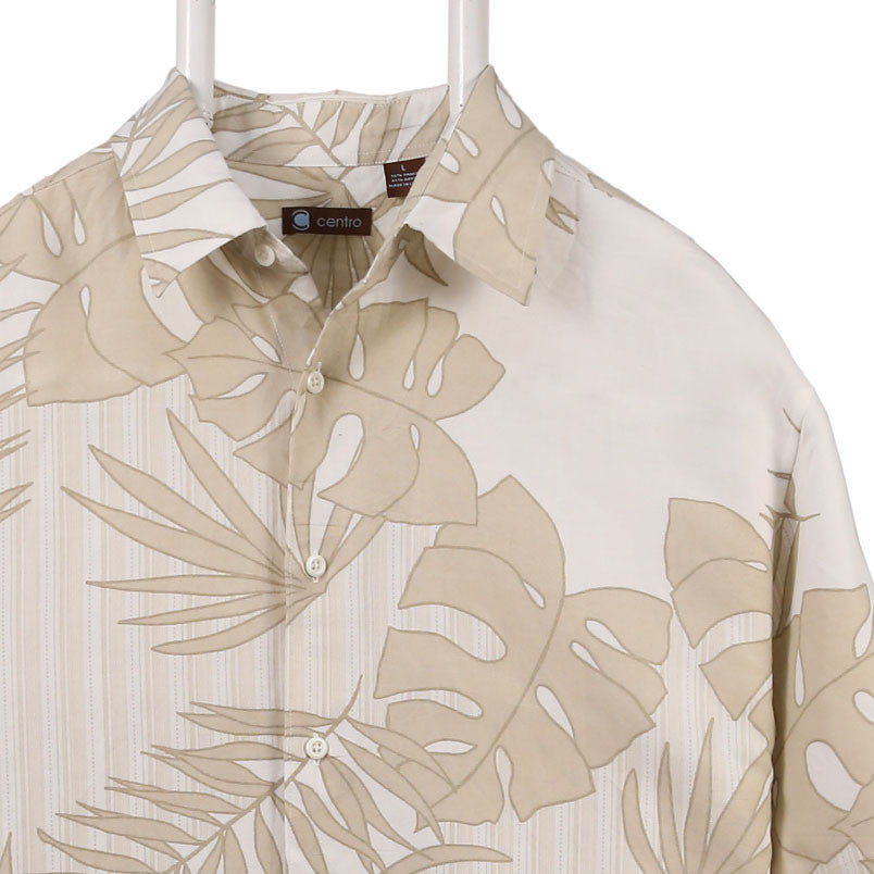 Vintage Centro 90s Beige Cream Printed Short Sleeve Shirt Large L