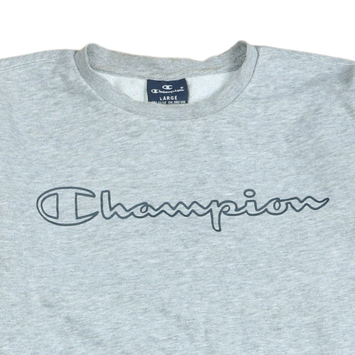 Champion Grey Sweatshirt Women’s Large Script Logo Ribbed Cuffs Crewneck Pullover Top