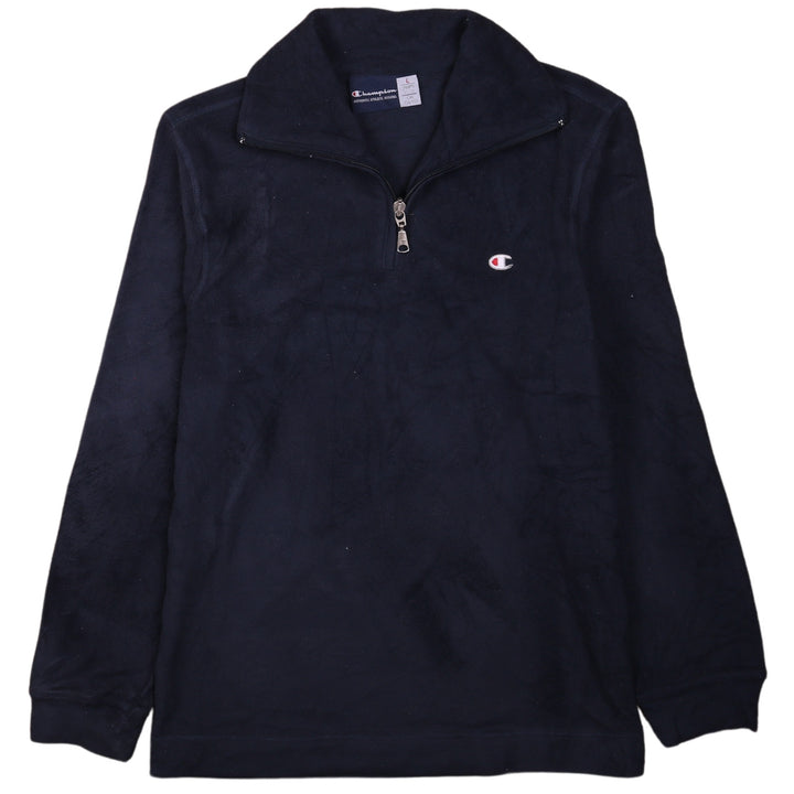 Champion Vintage Women's Large Navy 90's Quarter Zip Fleece Jumper
