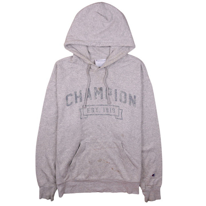 Vintage Champion Hoodie 90's Grey Spellout Men's Large Retro Style