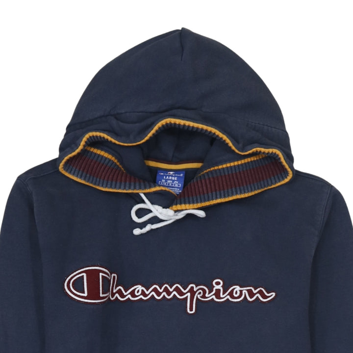 Champion 90's Spellout Pullover Hoodie Large Navy Blue