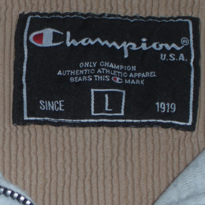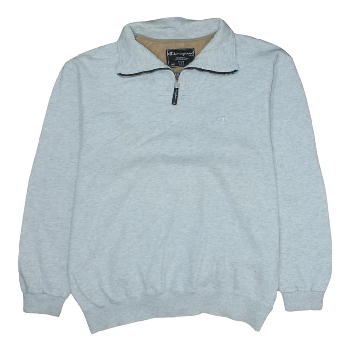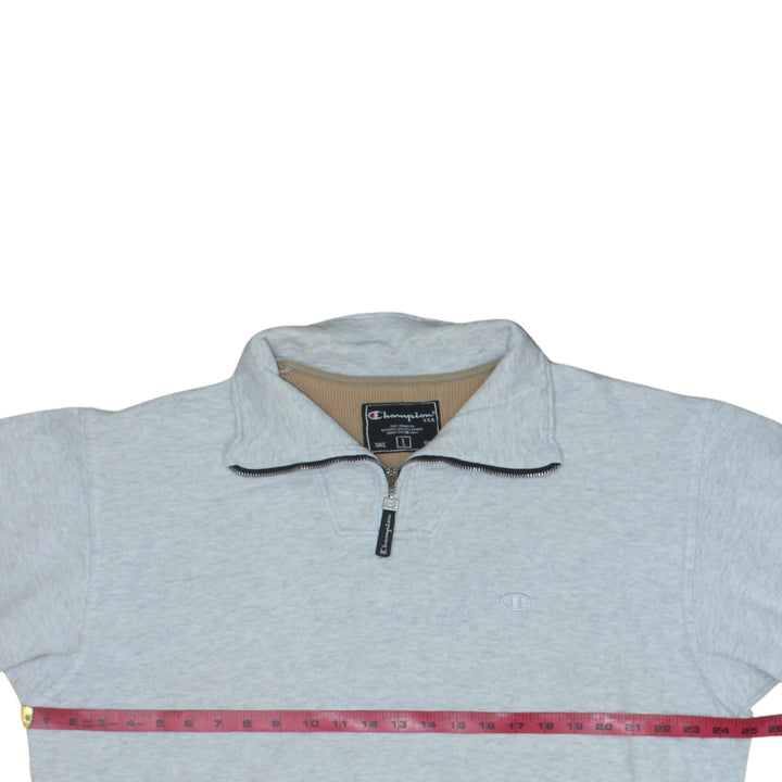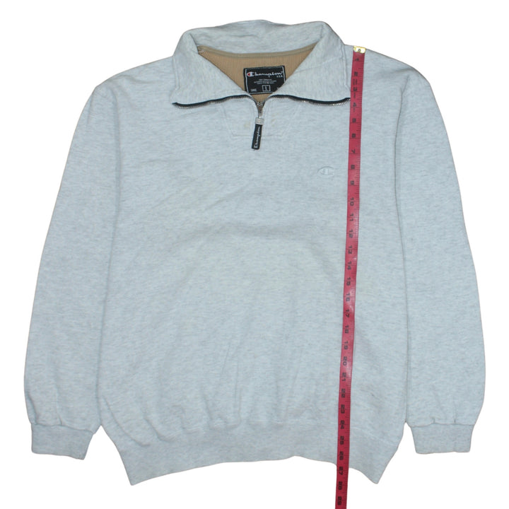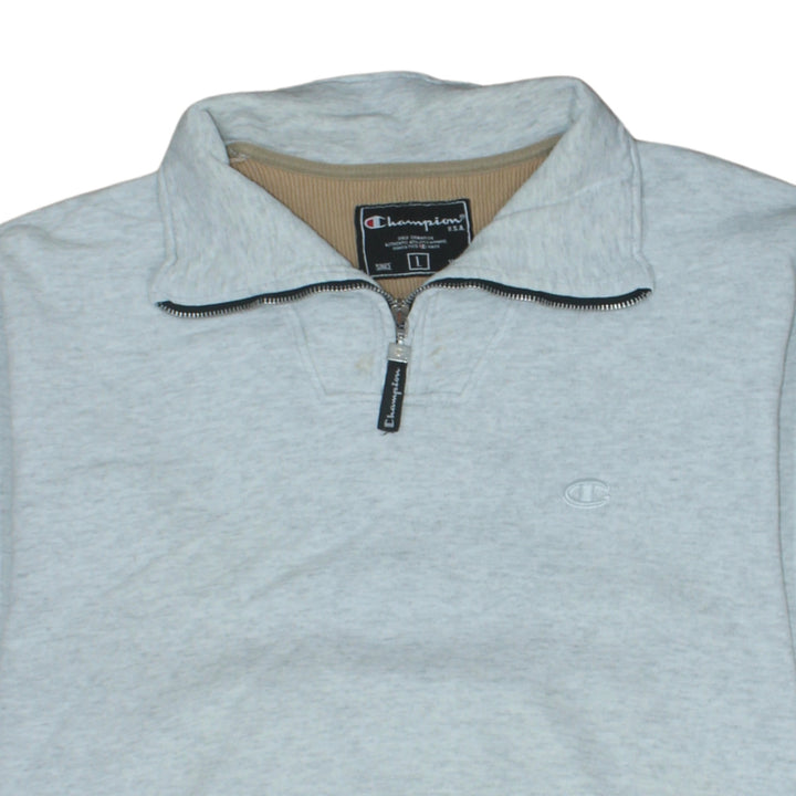 Champion Light Grey Quarter Zip Sweatshirt Men's Large Embroidered Logo Ribbed Hem Pullover