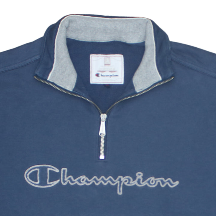 Champion Navy Blue Quarter Zip Sweatshirt Women’s 2XL Embroidered Logo Fleece Pullover Top