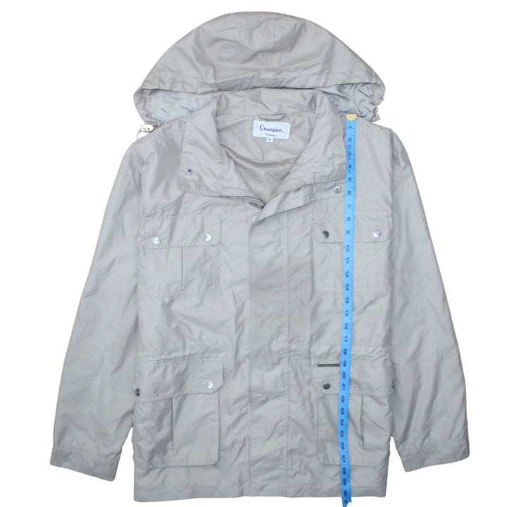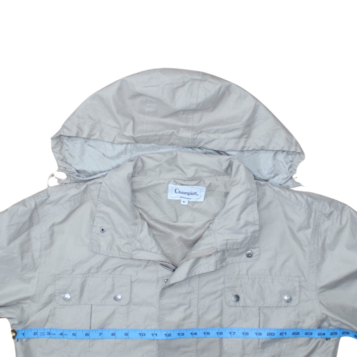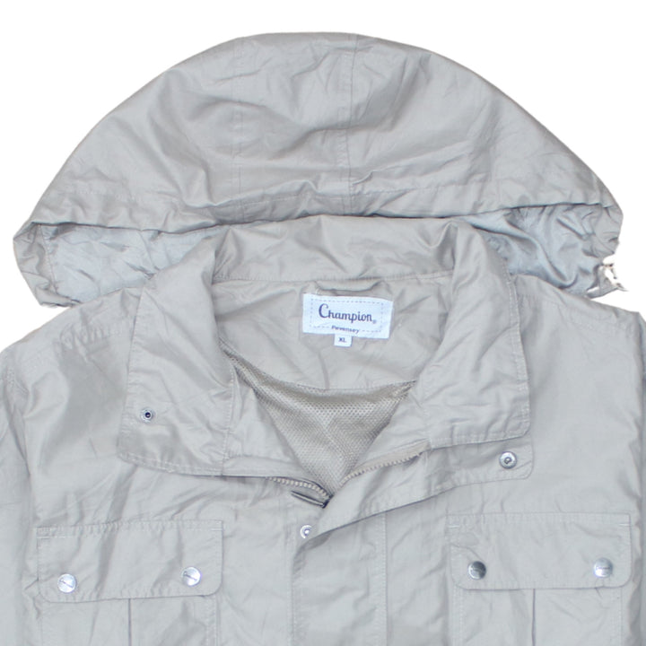 Champion jacket, Champion windbreaker, Champion hooded jacket, Champion light grey jacket, light grey windbreaker, men’s XLarge jacket, men’s XL windbreaker, Champion outerwear, lightweight polyester jacket, mesh lined jacket, hooded rain jacket, casual jacket, everyday jacket, festival jacket, hiking jacket, walking jacket, neutral colour jacket, zip front jacket, full zip windbreaker, snap pocket jacket, utility style jacket, Champion 3602 style, men’s Champion coat, relaxed fit jacket, oversized fit jacket, spring jacket, autumn jacket, layering jacket, sportswear jacket, Champion menswear, Champion grey coat, activewear jacket, polyester shell jacket, breathable mesh lining, four pocket jacket, adjustable cuff jacket, casual outerwear, street jacket, minimalist jacket, plain grey jacket, classic Champion jacket, vintage Champion piece, second hand Champion, pre-owned Champion, men’s hooded coat, light shell jacket, water resistant style, everyday outer layer, wardrobe staple jacket