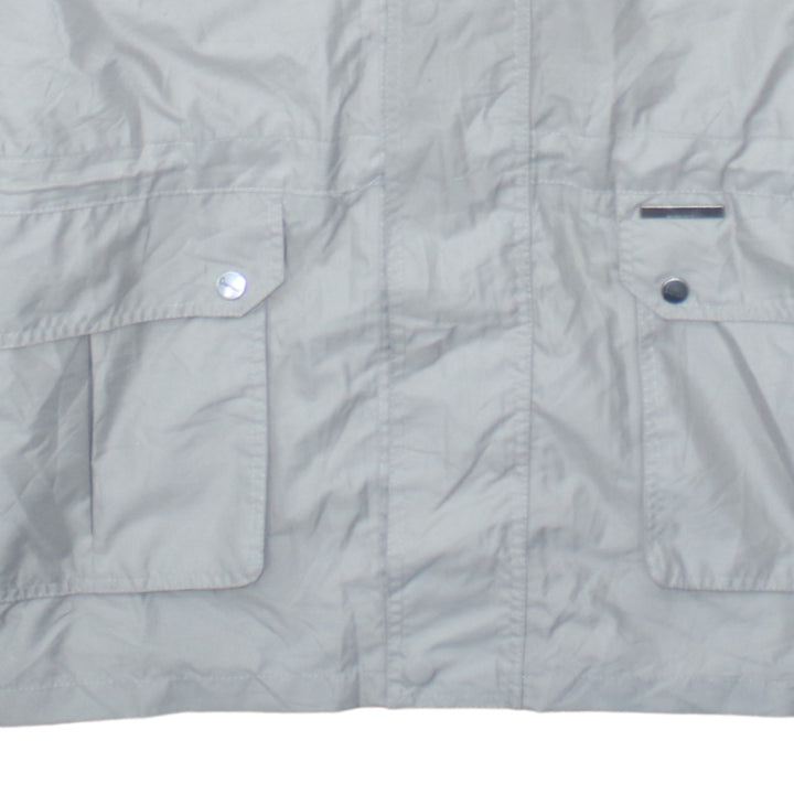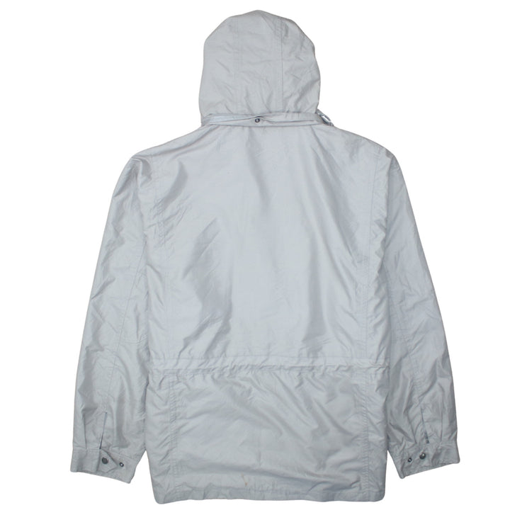 Key Features: Lightweight shell, hooded design, multiple flap pockets, mesh lining, neutral light grey