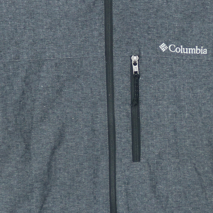 Columbia jacket, Columbia hooded jacket, Columbia windbreaker, Columbia grey jacket, dark grey hooded jacket, mens Columbia coat, mens XLarge jacket, XL hooded coat, full zip jacket, mens outdoor jacket, mens walking jacket, mens hiking jacket, Columbia Sportswear Company, embroidered logo jacket, zip pockets jacket, casual outerwear, everyday coat, relaxed fit jacket, oversized fit jacket, grey windbreaker, hooded windbreaker, mens grey coat, Columbia menswear, lightweight jacket, transitional jacket, polyester wool blend jacket, lined jacket, utility jacket, street casual jacket, commuter jacket, camping jacket, travel jacket, waterproof style jacket, athletic outerwear, sportswear jacket, Columbia chest logo, grey hooded outerwear, practical jacket, layering piece, mens casual wear, mens outer layer, Columbia grey hood, Columbia full zip, Columbia XL mens, outdoor clothing, mens fashion, second hand Columbia, pre-owned Columbia jacket, tiny marks on arm