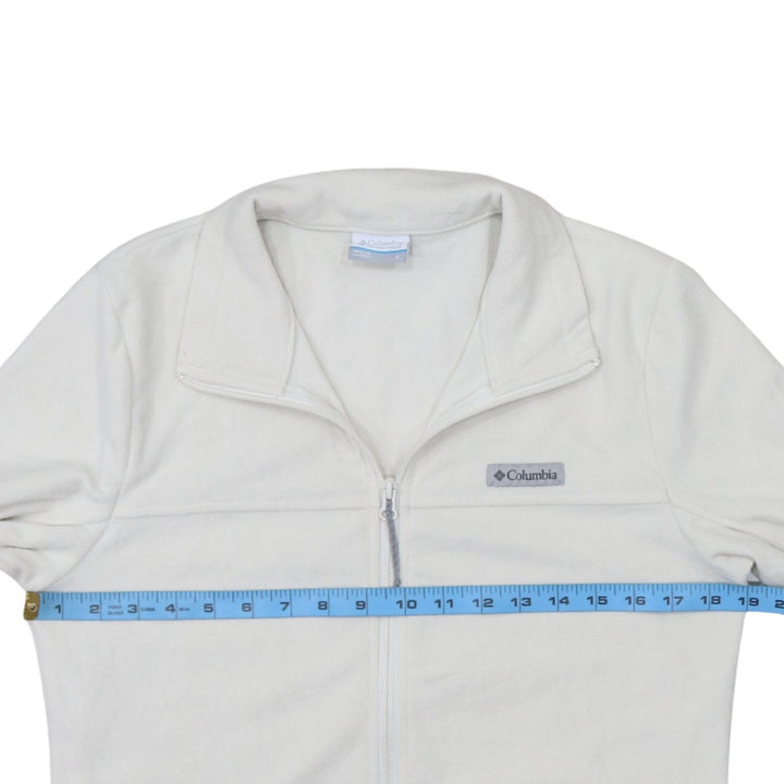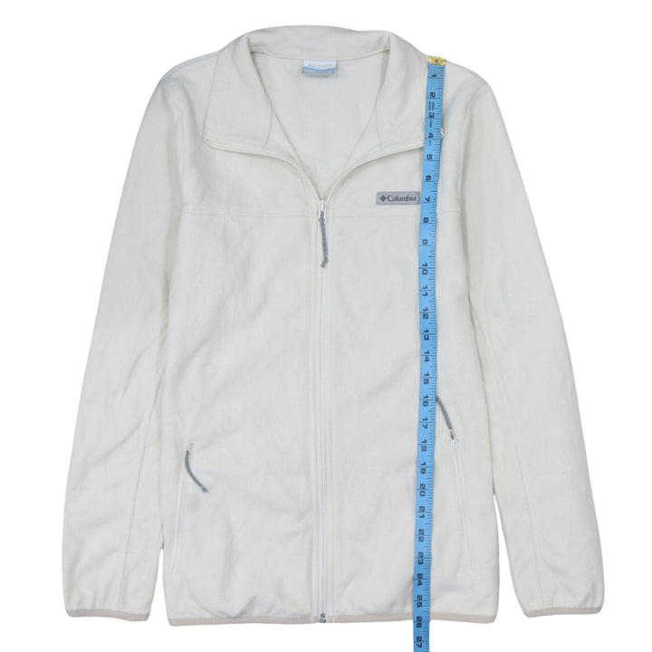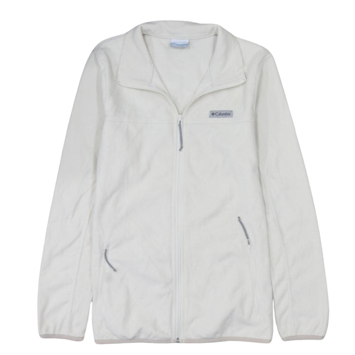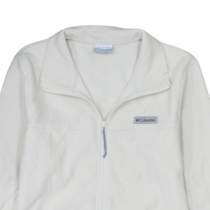 Columbia White Fleece Jacket Women’s Large Full Zip Pockets Embroidered Logo Outdoor Top