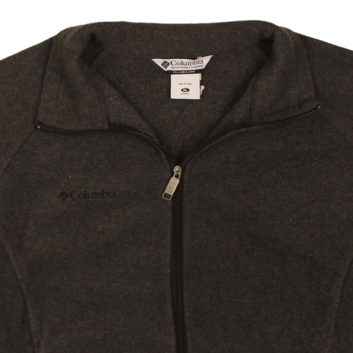 Columbia Dark Charcoal Fleece Jacket Women's XLarge Full Zip Embroidered Logo Pockets Outerwear