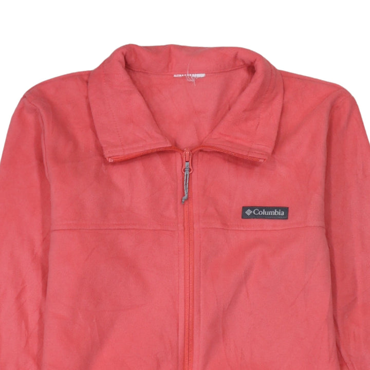 Columbia Coral Pink Fleece Jacket Women’s XSmall Full Zip Embroidered Chest Logo Pockets Outerwear