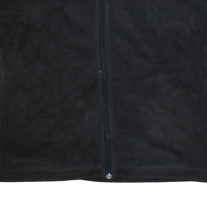 Key Features: Soft black fleece, full zip front, embroidered chest logo, elastic cuffs, twin side pockets