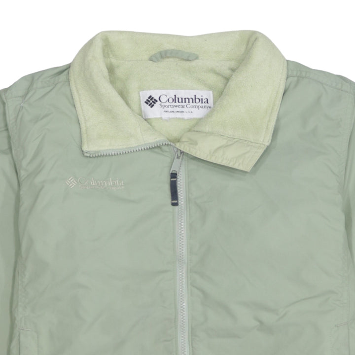 Columbia, Columbia jacket, Columbia windbreaker, Columbia fleece lined jacket, light green jacket, sage green jacket, men's Columbia jacket, men's medium jacket, M size jacket, nylon shell jacket, polyester fleece lining, fleece lined windbreaker, full zip jacket, full zip windbreaker, track jacket, casual outerwear, lightweight jacket, insulated jacket, embroidered logo jacket, logo windbreaker, elastic cuffs jacket, spring jacket, autumn jacket, everyday jacket, outdoor jacket, walking jacket, casual wear, layering piece, relaxed fit jacket, vintage Columbia, classic Columbia style, minimal logo jacket, light green outerwear, green windbreaker, fleece jacket, street casual jacket, men's outerwear, shell jacket, polyester insulation, zip front jacket, soft fleece collar, comfortable jacket, versatile jacket, commuter jacket, travel jacket, practical jacket, quality outerwear, Columbia Sportswear Company